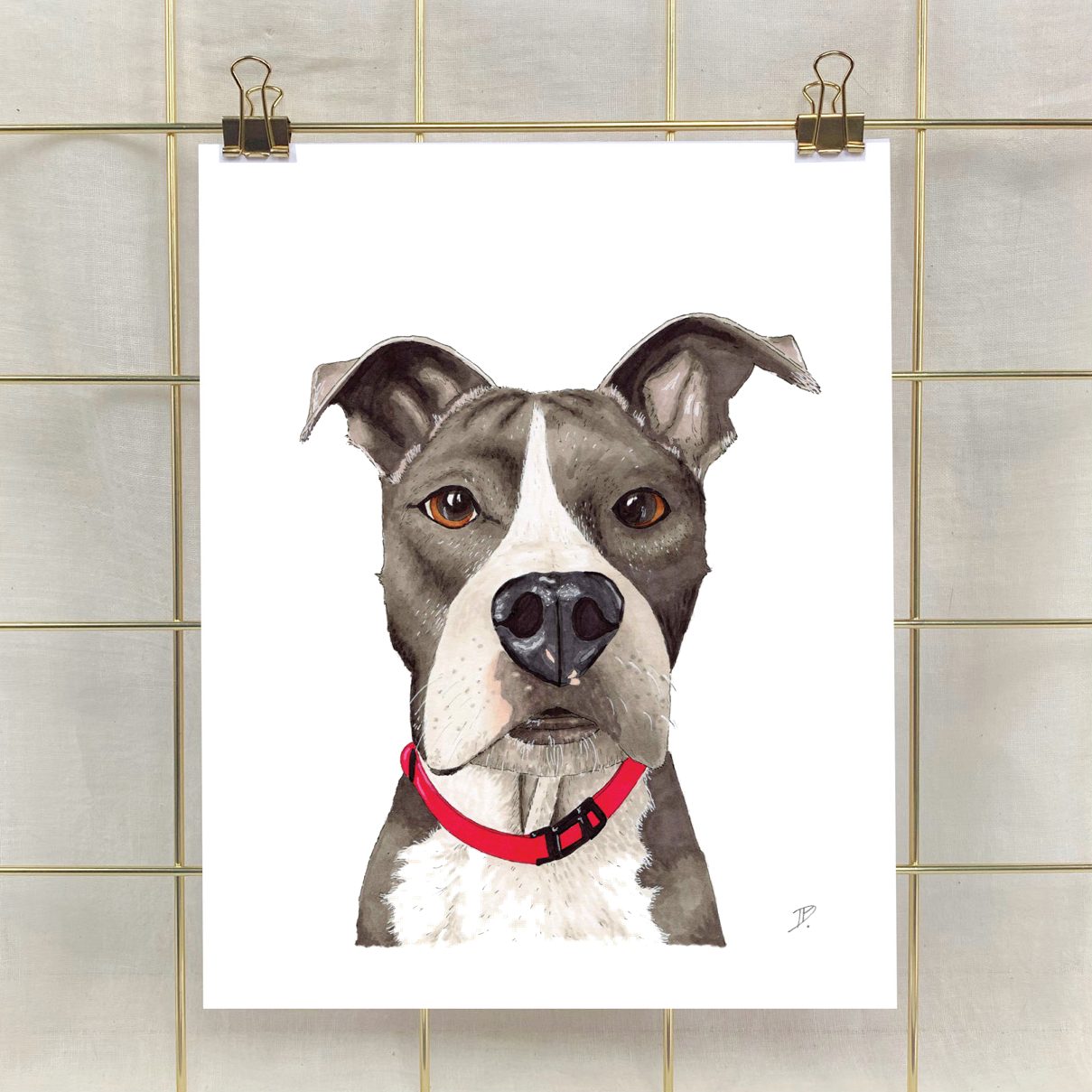 "We met Kristin at a holiday market and I reached out the next day to commission a pet portrait. She offered great guidance on the types of photos she needed from us and was upfront about the timeline for our commission. We were thrilled when we saw the draft and Kristin graciously accepted a few edits that we asked for (altering our pup’s collar and providing a little reverse aging for our 13-year-old senior pup). We were thrilled with the final product - Kristin really captured her in a way that not only does it look just like her, but there's a special energy to the portrait. The portrait is hanging in our family room and we have received many compliments on it!"