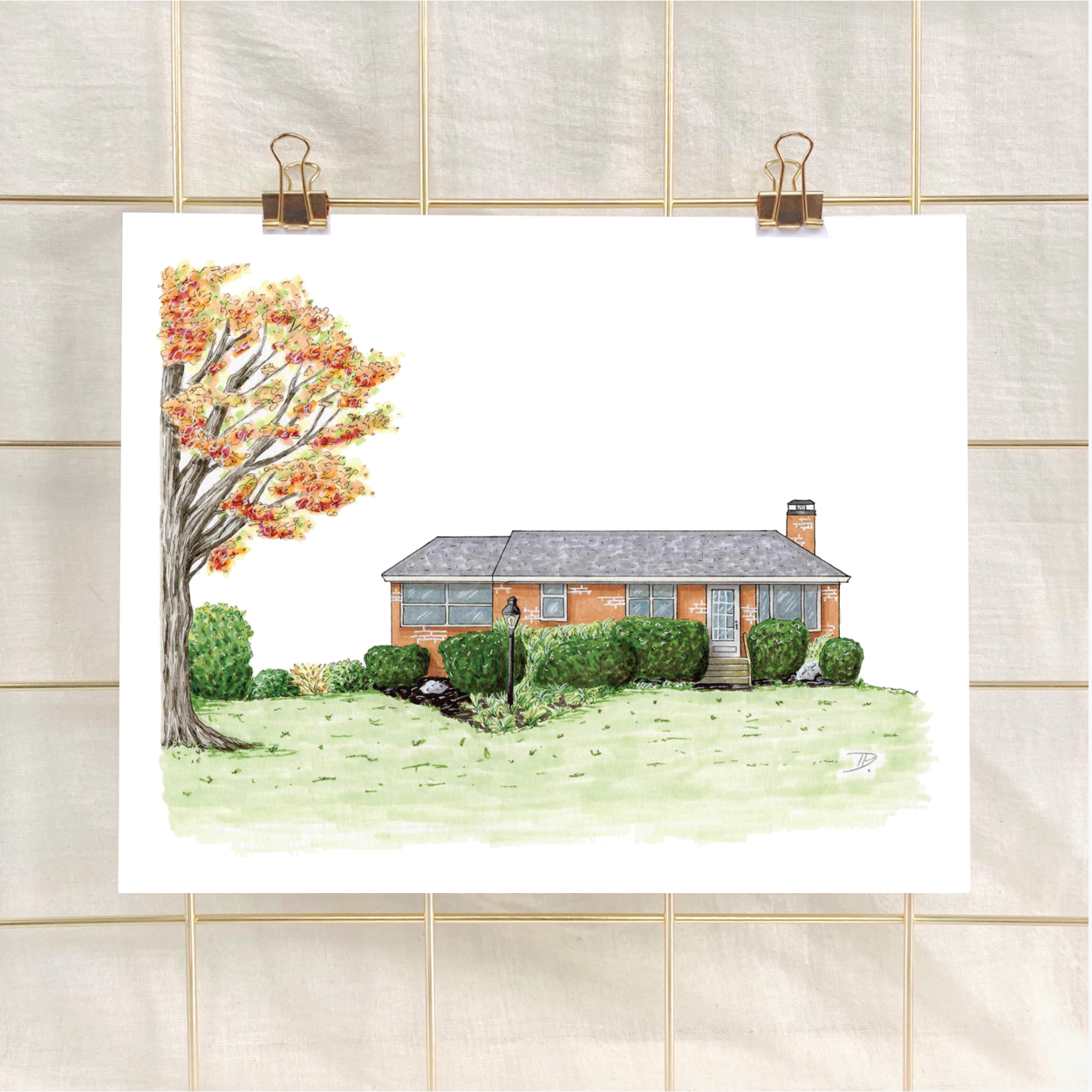 "The most amazing house portrait! If you’re thinking about commissioning Kristin to make you a house portrait, absolutely do it! She is amazing. Seriously, a true talent. We didn’t have one solid picture of our house so we sent her a few to put together and she did an amazing job capturing all the details we wanted. It came out better than I could have ever imagined and I love walking past the picture in my home every day. Thank you, Kristin!"
