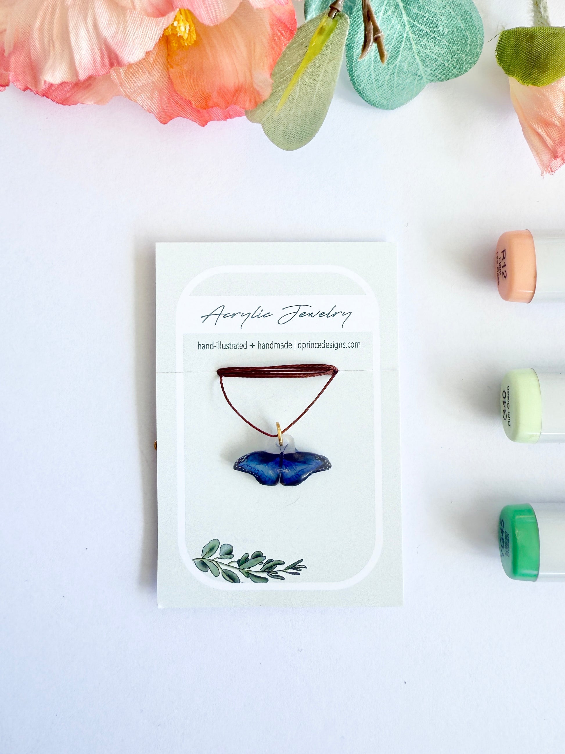 Hand-Illustrated Blue Morpho Butterfly | Handmade Acrylic Necklace