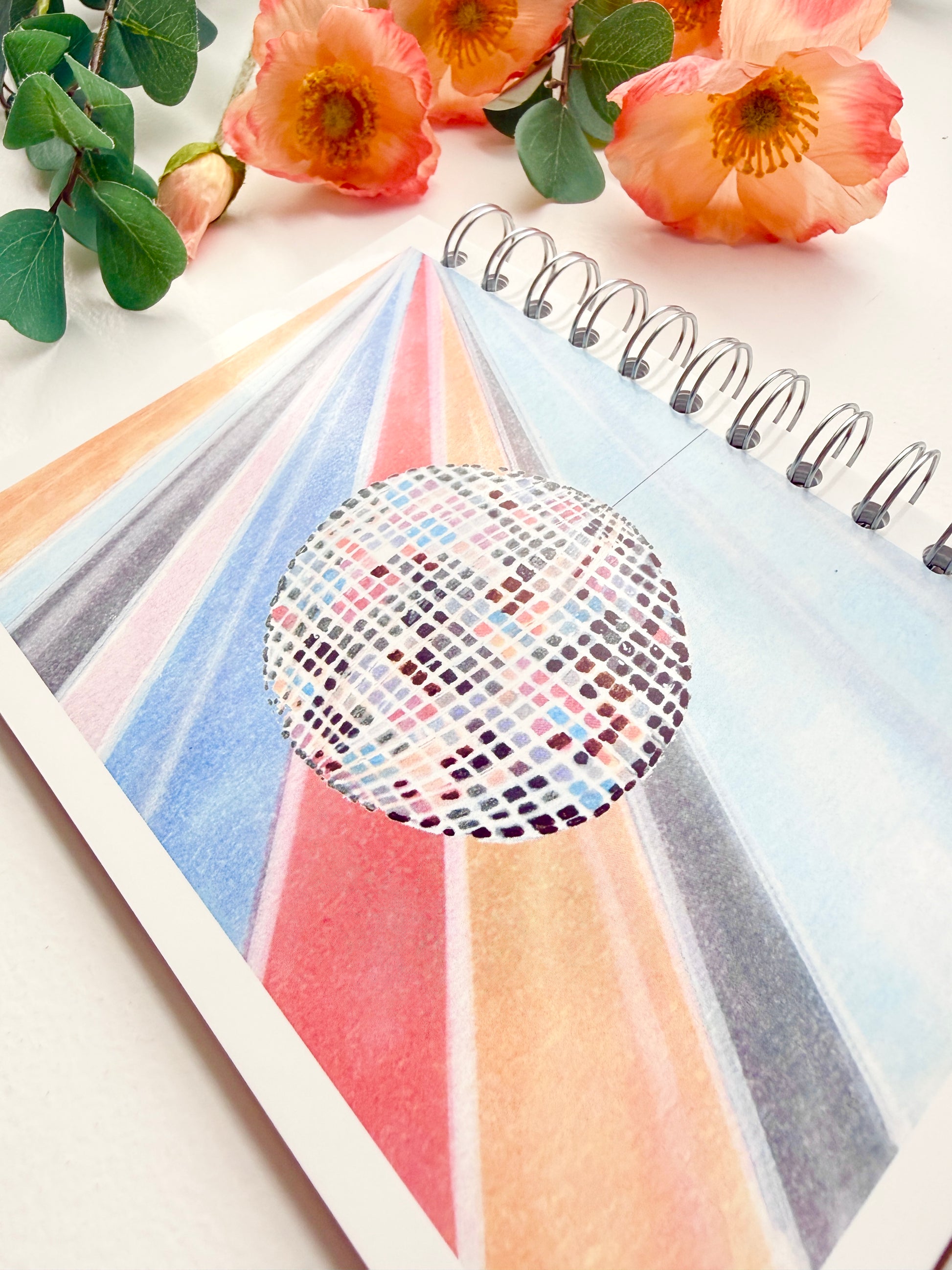 This 5" x 7" 70-page notebook/sketchbook features a cover print of an original pen-and-ink illustration. Each notebook is assembled and bound by hand with high quality blank paper. Please note: the spiral binding color may differ depending on availability.