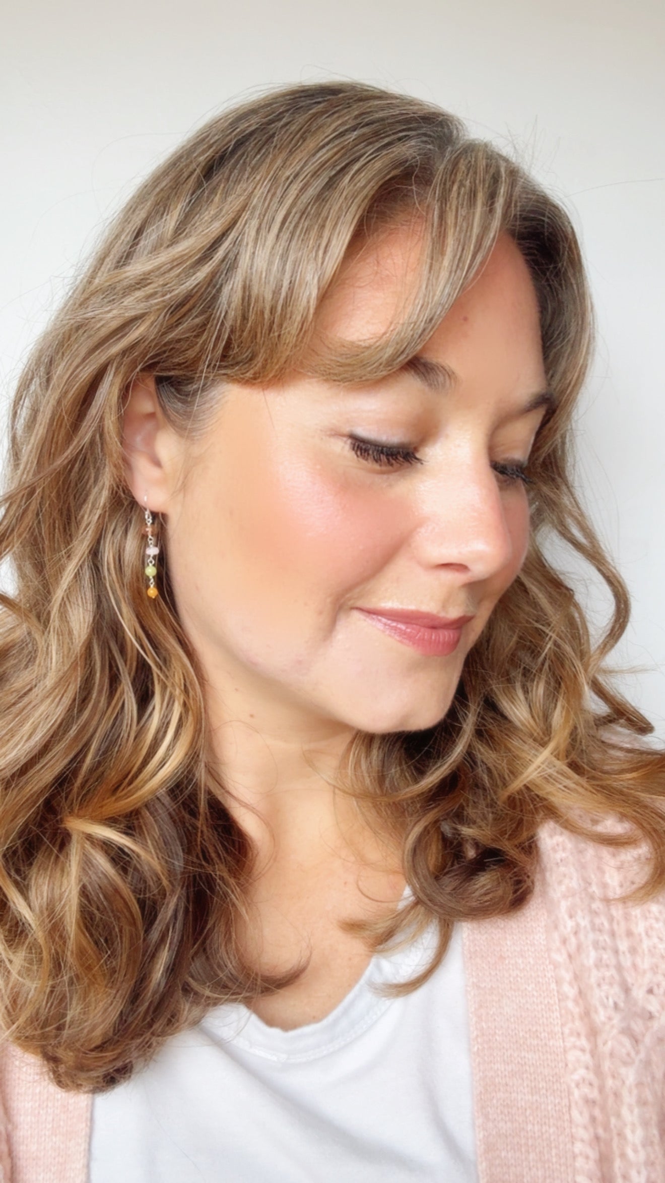 - Petite Earrings: aragonite, opal, chartreuse jade, and carnelian—form a delicate and harmonious combination. Lightweight and versatile, these earrings offer a gentle nod to the highlands. These earrings are sized 1 ½” x ¼” x ¼.